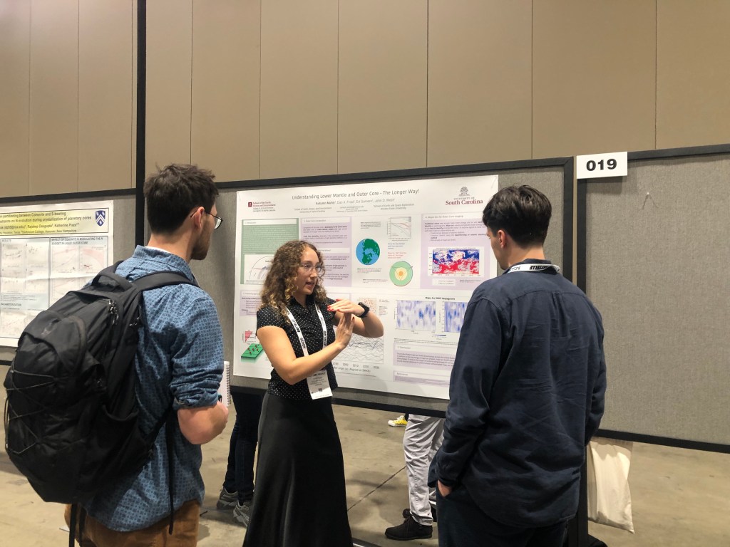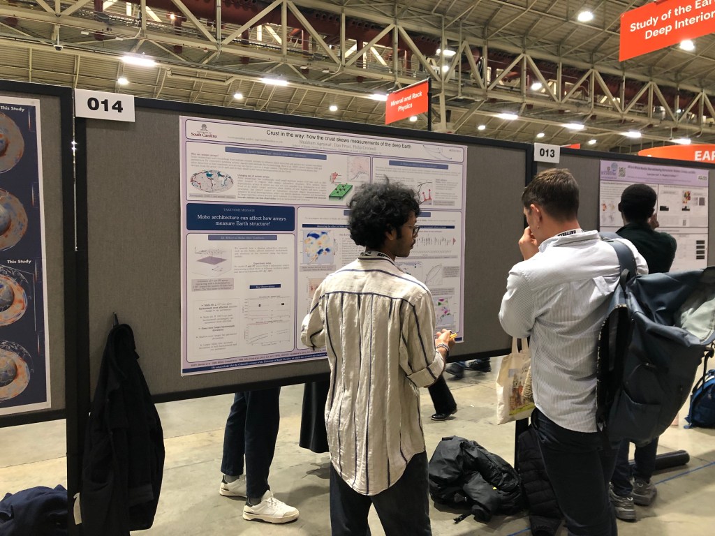 My group at the American Geophysical Union 2025 Fall Meeting. From left to right: Ademar Fernandez, Dan Frost, Eva Golos (Assistant Professor at U. Madison, Wisconsin), Nini Markhvashvili, Autumn Muhly, Shubham Agrawal